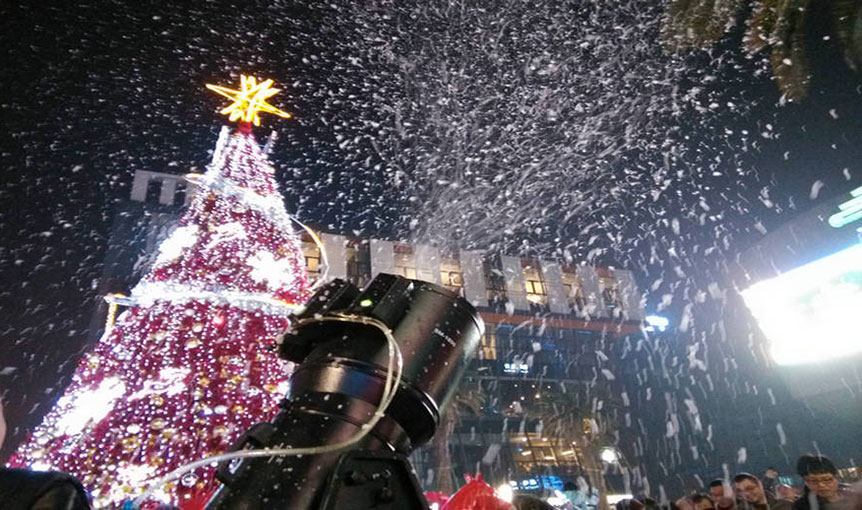 利用高壓空氣泵產(chǎn)生的強力氣流將雪花油變成漫天飛舞的雪花,效果相當逼真,通過線控控制,能自由調(diào)節(jié)雪花大小,隨心所欲,打造理想的雪花效果。